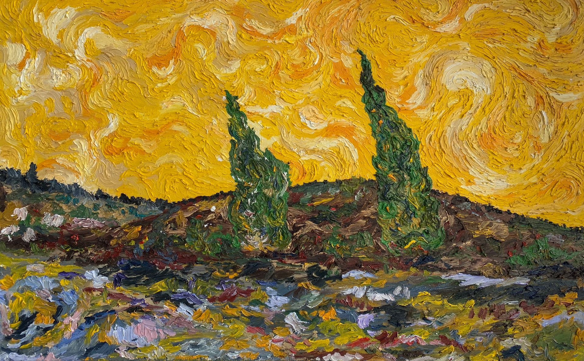 50x80 cm painting based on the vast fields of Amsterdam, whilst being able to pass through these fields which inspired one of my favorite artists Van Gogh.