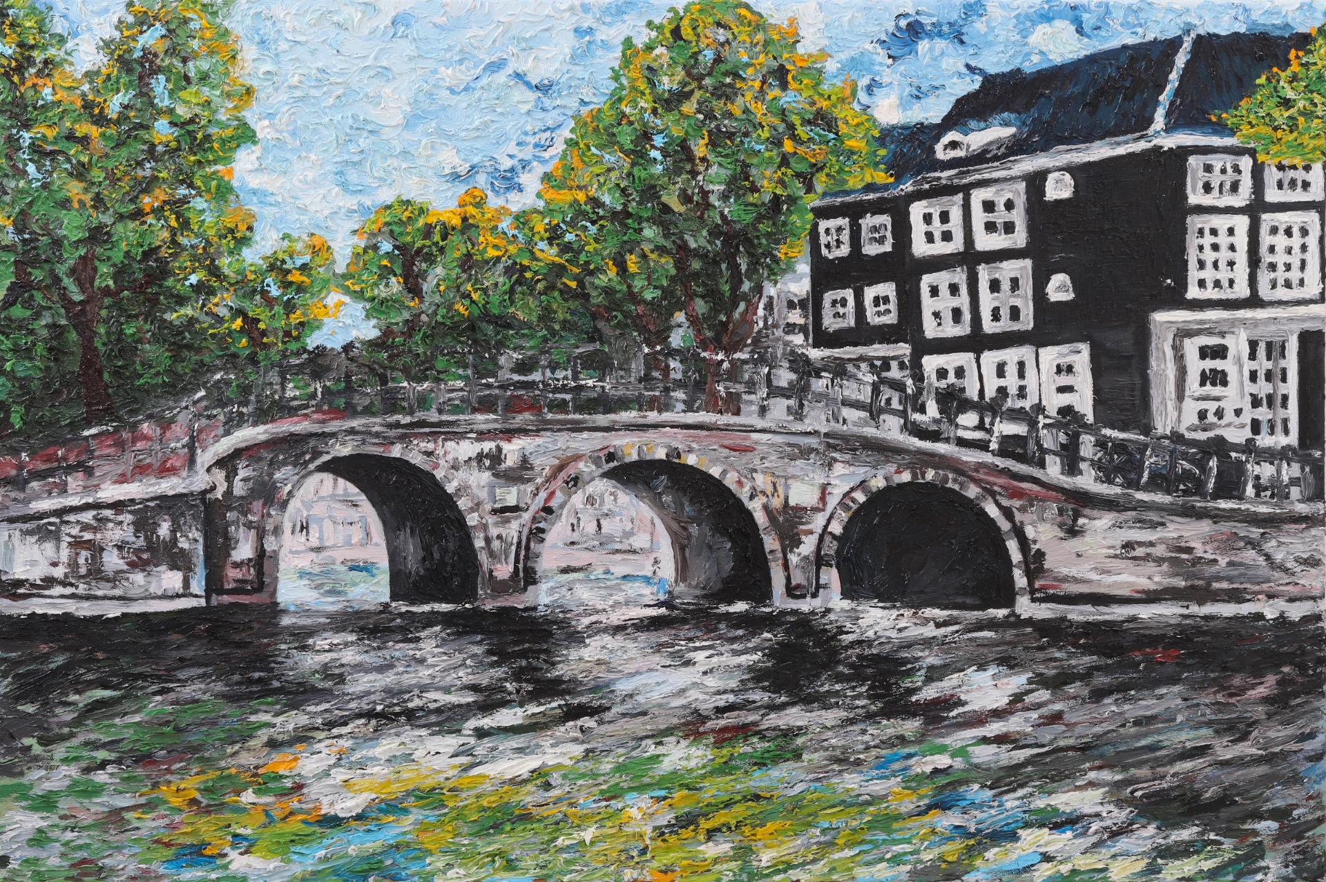 Painting 90x60 cm based on the trip to Amsterdam through its well-known numerous canals.