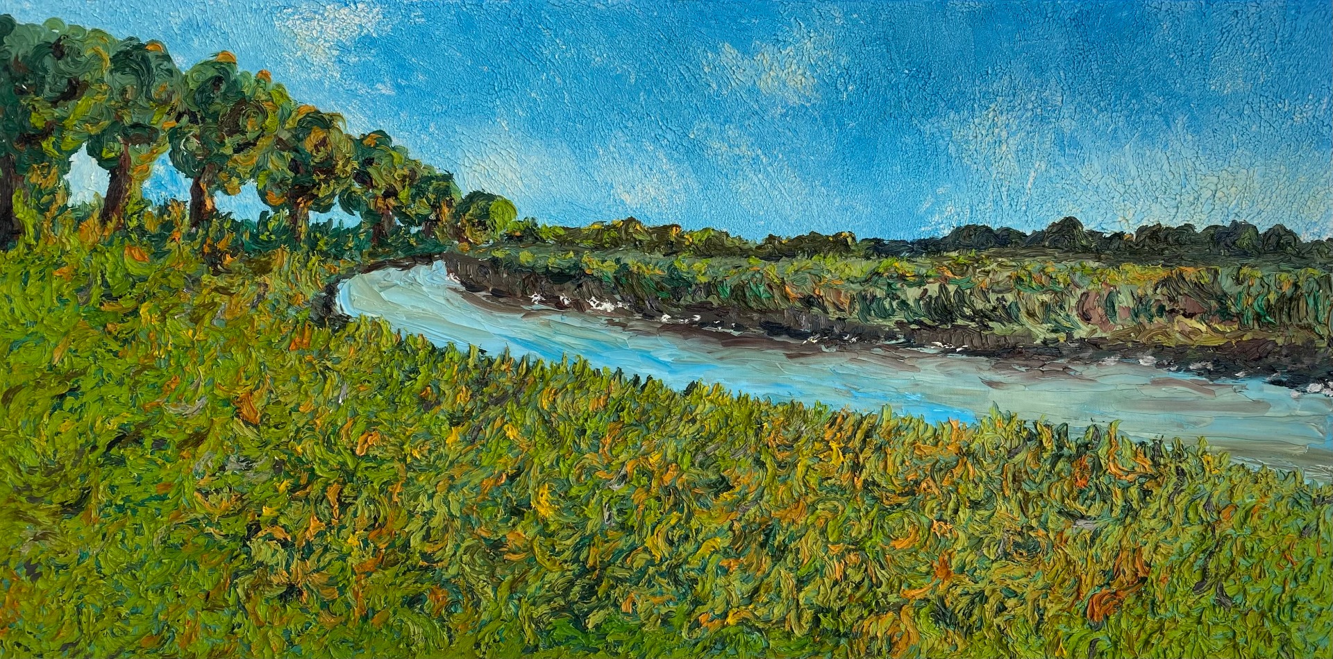 Pintura 50x80 cm baseada nos vastos campos de Amesterdão, sem deixar de poder passar por estes campos dos quais inspirou um dos meus artistas favoritos Van Gogh.